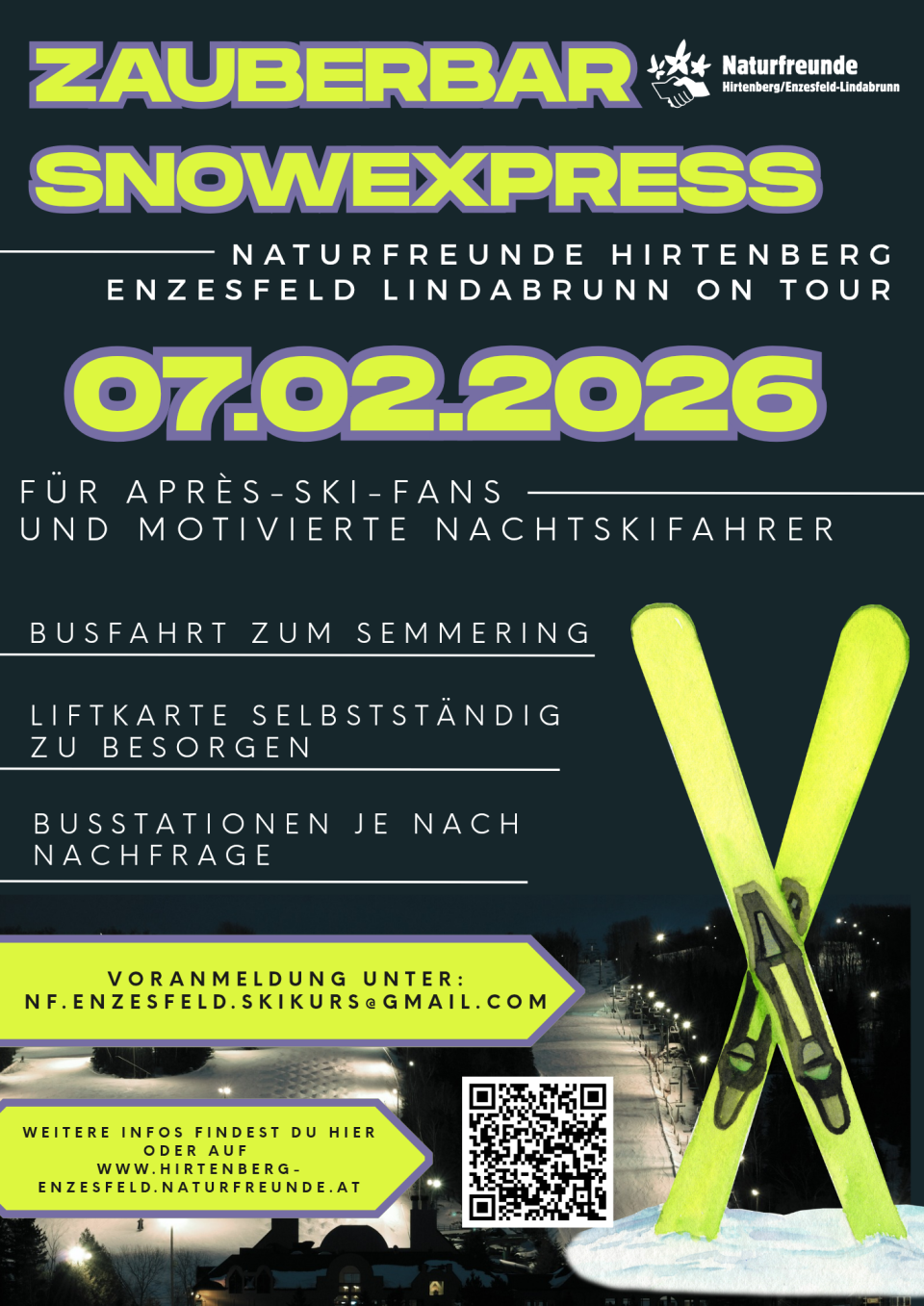 Naturfreunde on Tour – Mit dem Partybus zum Nachtskifahren am Semmering!